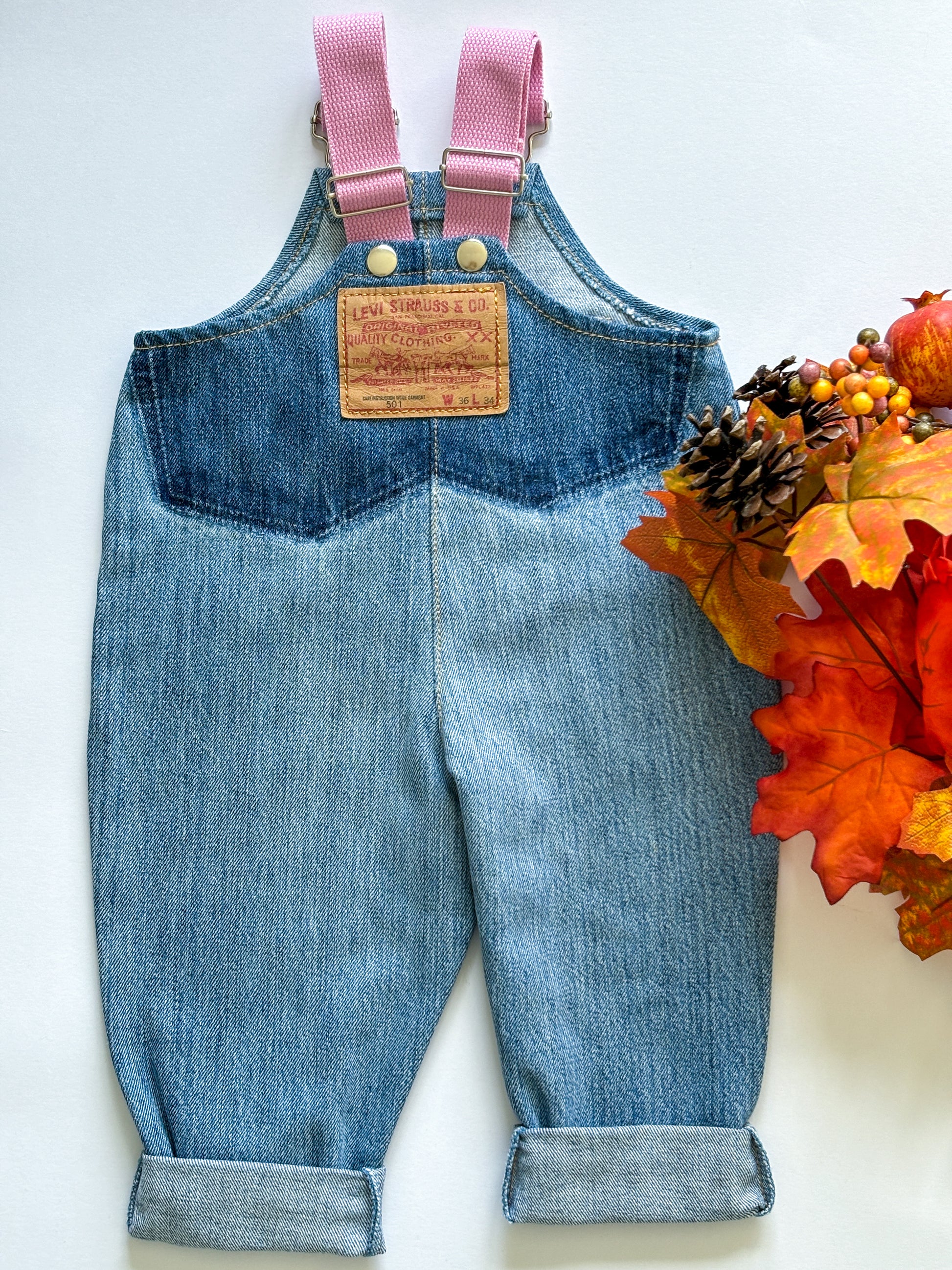 This gorgeous pair of children’s dungarees have been made from vintage Levi 501’s and coupled with pink straps.